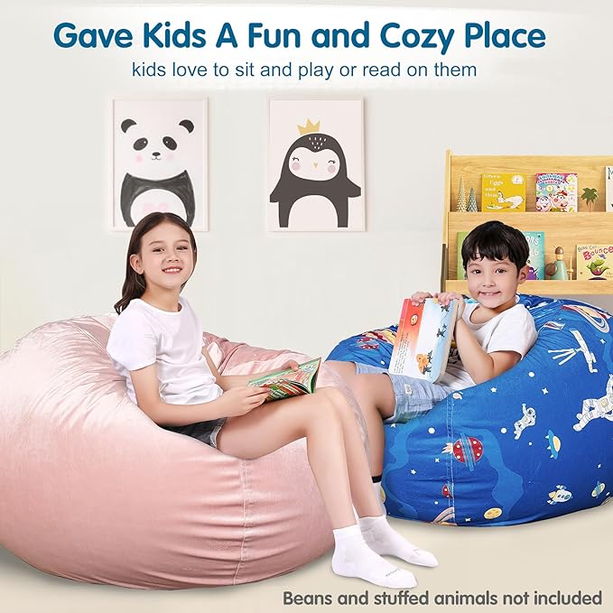 • Bean Bag Cover Only: You will like this concept of using stuffed animals, pillows, and blankets as the filling. Creative solution for managing stuffed animal clutter that is popular with both kids and parents, as turns your soft animals into a bean bag chair, a great way to keep the room tidy while also providing a fun and cozy place to sit and play or read for kids and adults.