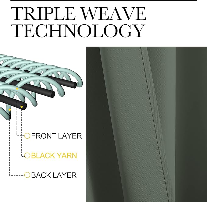 • MULTI-FUNCTION: Super heavy and soft Blackout Curtain Panels are very upmarket. Besides, 85%-99% light blocking, thermal insulated, soundproof, Fade-resistant, energy-efficient. Thread trimmed and wrinkle-free, both sides are the same color.