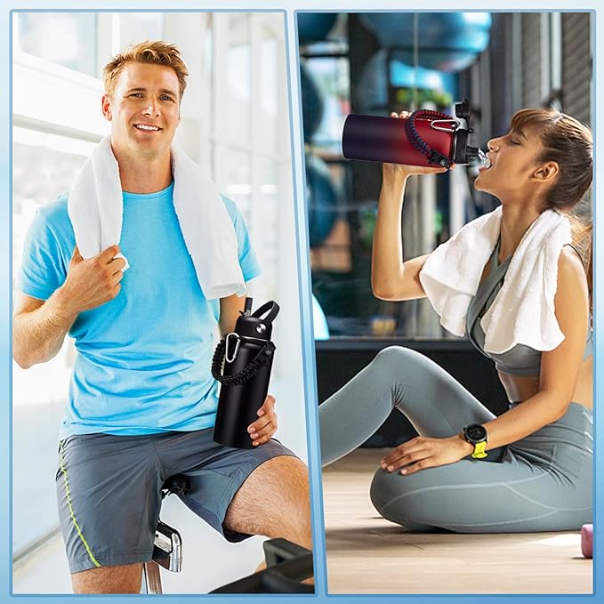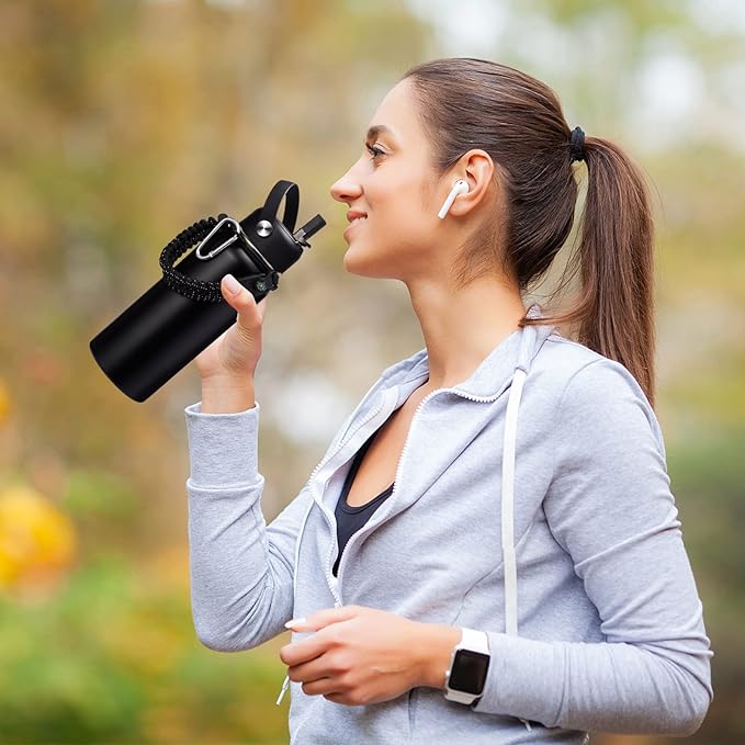 • SUPER DEAL COMBO - Buy one 32 oz insulated water bottles, get 9 accessories: 1 x straw lid, 1x Auto Chug lid, 1 x paracord handle, 2 x straws(BPA Free), 1 x carrier bag, 1 x shoulder strap, 1 x protective silicone boot, 1 x straw brush. The 32oz insulated water flask perfect to keep you stay hydrated throughout the day