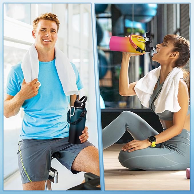 • SUPER DEAL COMBO - Buy one 32 oz insulated water bottles, get 9 accessories: 1 x straw lid, 1x Auto Chug lid, 1 x paracord handle, 2 x straws(BPA Free), 1 x carrier bag, 1 x shoulder strap, 1 x protective silicone boot, 1 x straw brush. The 32oz insulated water flask perfect to keep you stay hydrated throughout the day