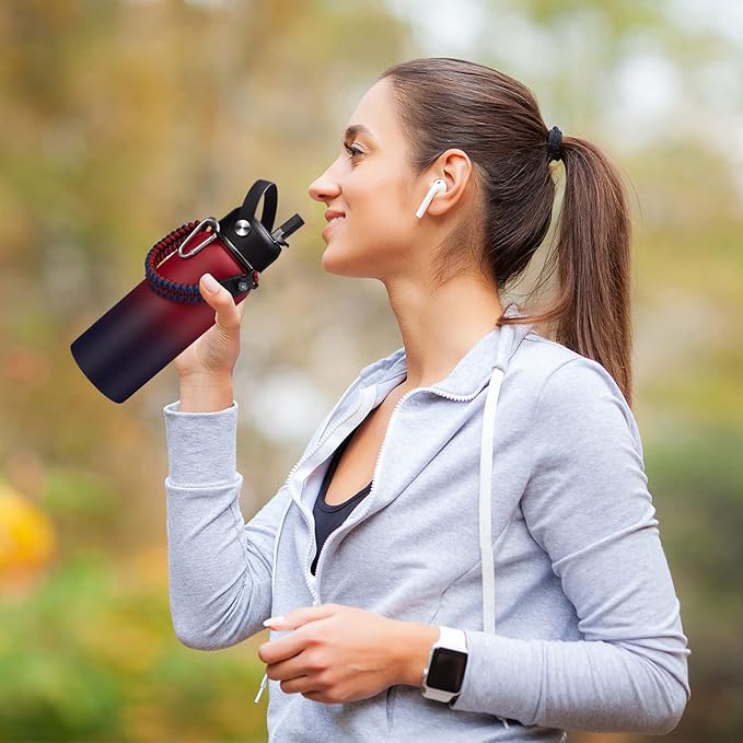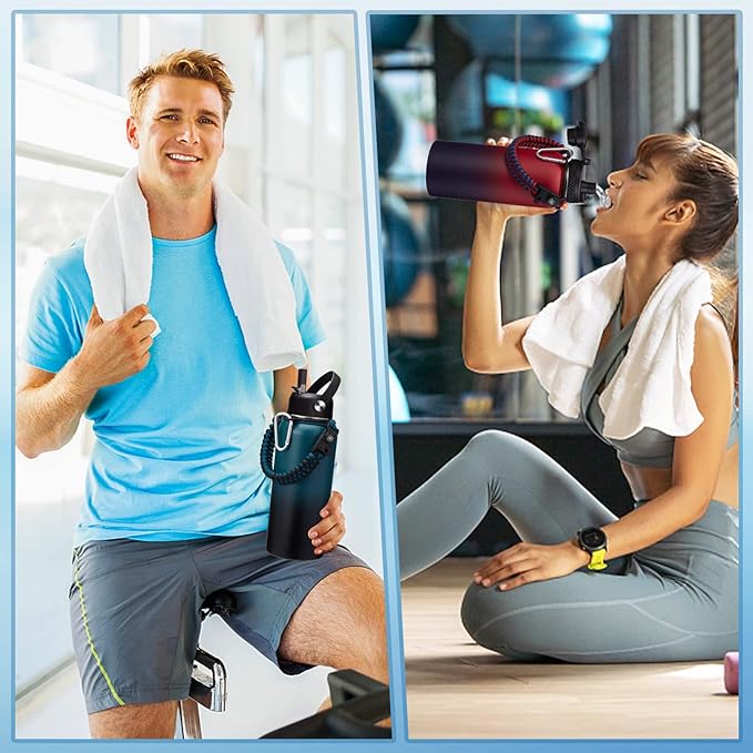 • SUPER DEAL COMBO - Buy one 32 oz insulated water bottles, get 9 accessories: 1 x straw lid, 1x Auto Chug lid, 1 x paracord handle, 2 x straws(BPA Free), 1 x carrier bag, 1 x shoulder strap, 1 x protective silicone boot, 1 x straw brush. The 32oz insulated water flask perfect to keep you stay hydrated throughout the day