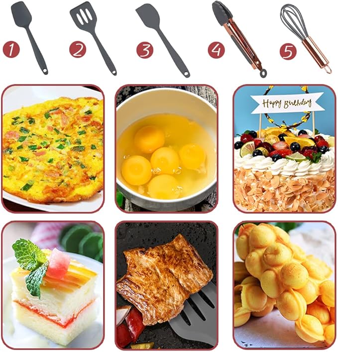 • 〖Fashionable holiday gift〗: This set of mini silicon kitchen tools adopts fresh grey and rose gold design, stylish appearance and excellent quality, very suitable as a holiday gift, which will be impressive.