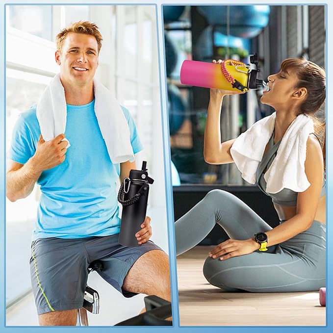 • SUPER DEAL COMBO - Buy one 40 oz insulated water bottle, get 9 accessories (2 x lids(BPA Free), 1 x paracord handle, 2 x straws(BPA Free), 1 x carrier bag, 1 x shoulder strap, 1 x protective silicone boot, 1 x straw brush). We offer LIFETIME WARRANTY and our friendly customer service is always here