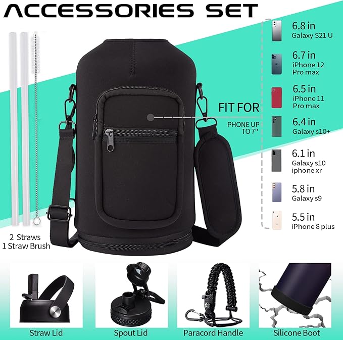 • SUPER JOYFUL COMBO: Buy a 128 oz insulated water bottle, get 9 accessories (2 x lids, 1 x survival paracord, 1 x carrying pouch, 1 x shoulder strap, 1 x protective cup mat, 2 x straws, 1 x straw brush). DIGJUPER provide a lifetime warranty and 7X24H customer service.