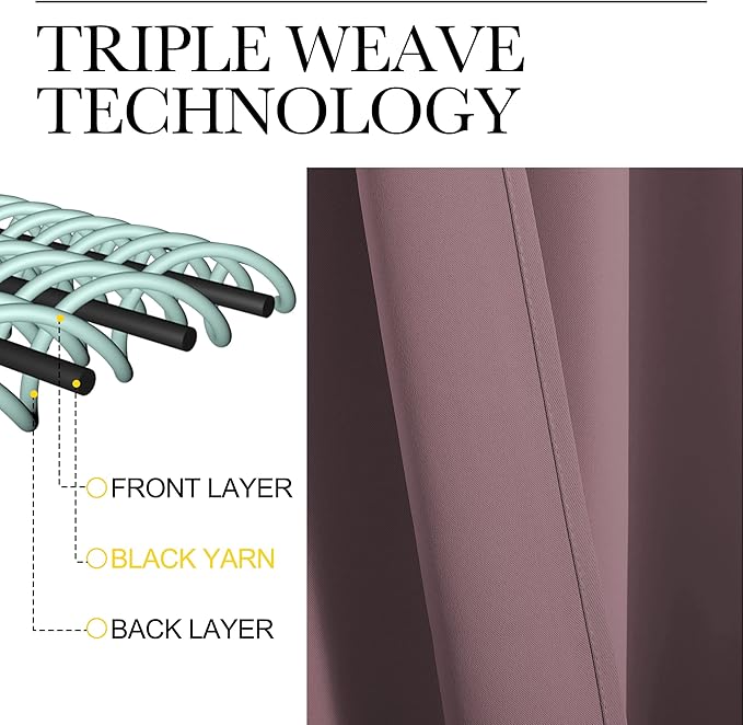 • SERVE WELL: Curtains impede 85%-99% light and UV rays(Dark color curtains work well). Noise-reducing, better TV viewing thanks to the innovative triple weave technology.