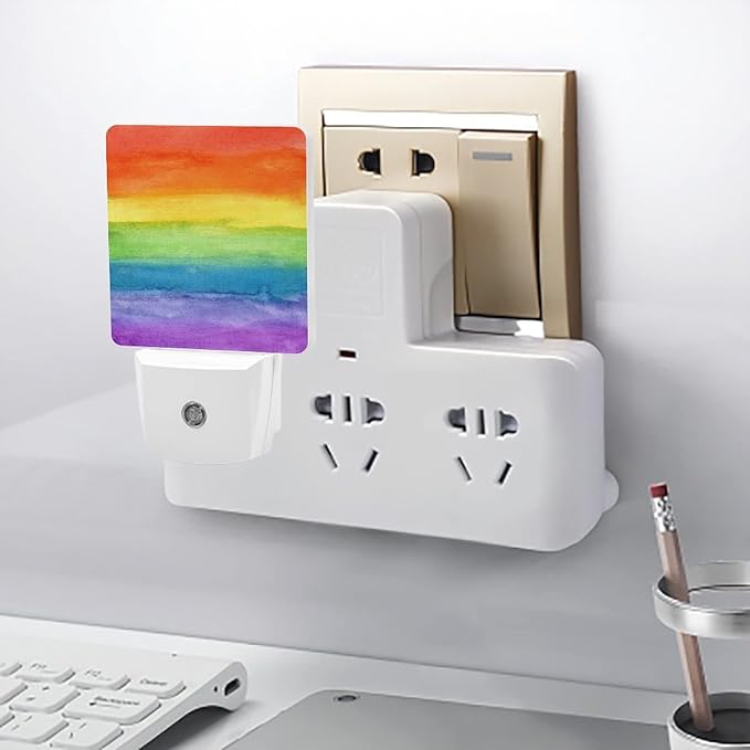 LED Night Lights Lamp with Dusk to Dawn Sensor, Striped Rainbow Watercolor Night Lamp, Night Lights Plug Into Wall for Kids Room, Bedroom, Bathroom, Kitchen, Hallway
