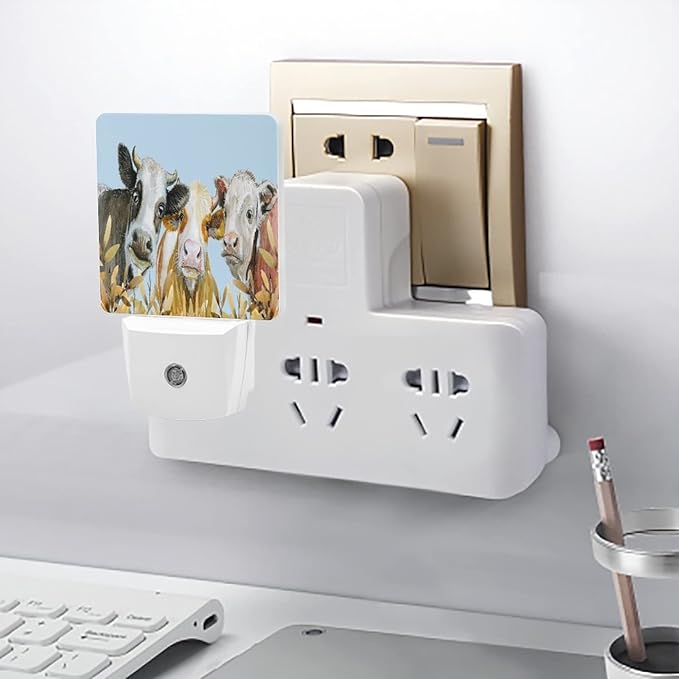 LED Night Lights Lamp with Dusk to Dawn Sensor, Watercolor Painted Cow Night Lamp, Night Lights Plug Into Wall for Kids Room, Bedroom, Bathroom, Kitchen, Hallway
