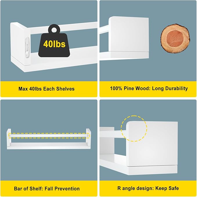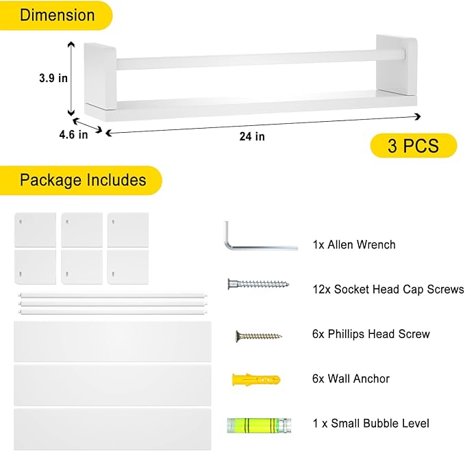 • Easy to Install: With the included hardware, these bookshelves for wall mounting can be easily installed by anyone, even those without handyman skills.