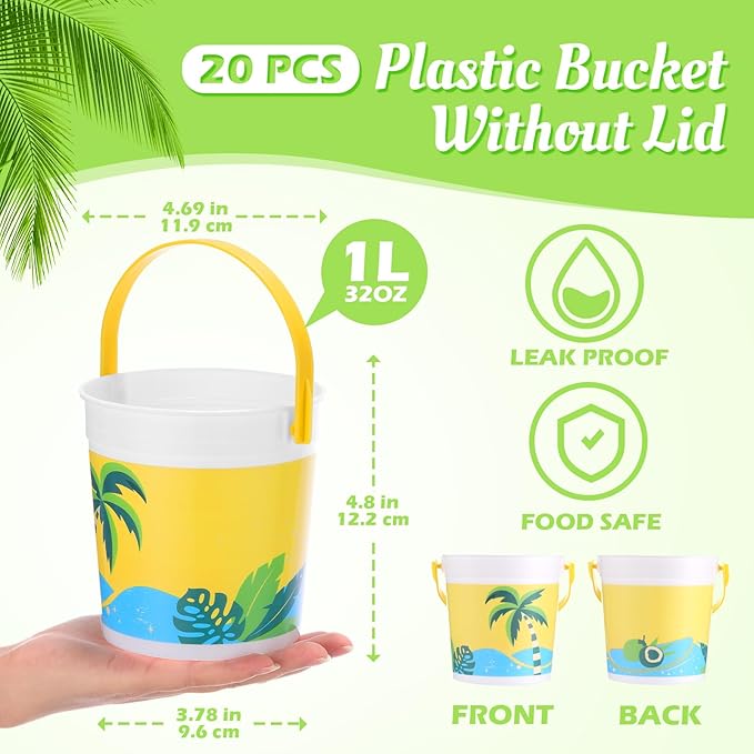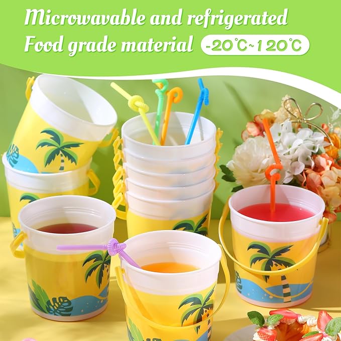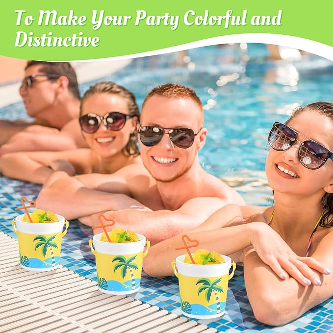 • Practical and Thoughtful Set: there are 20 drink buckets for parties and 100 colorful straws for easy use; The thoughtful and practical set is ideal for various parties, like birthday, wedding, anniversary, summer parties