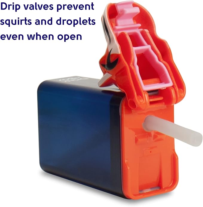 • New "heart-valve" in spout prevents drips when Drink in the Box is tipped over. Safer and better seal and locking lid prevents messy spills. Replaceable silicone straw and seal. Three year guarantee.