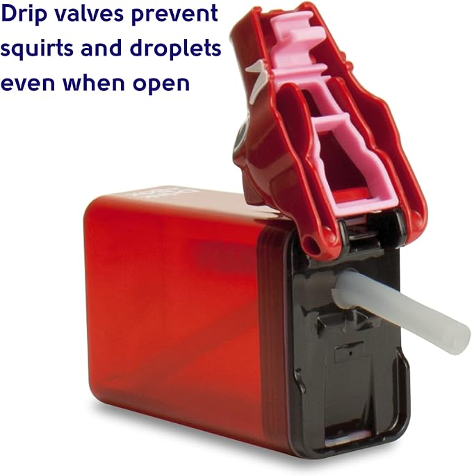 • New "heart-valve" in spout prevents drips when Drink in the Box is tipped over. Safer and better seal and locking lid prevents messy spills. Replaceable silicone straw and seal. Three year guarantee.