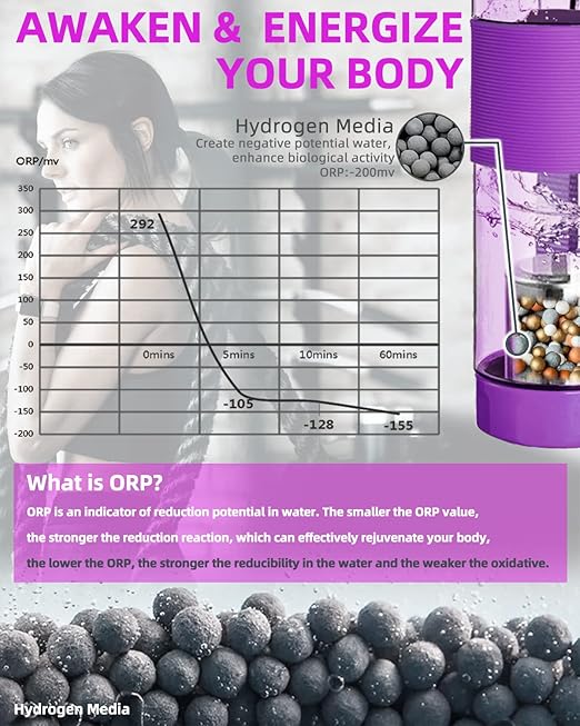 • Reduce ORP levels: Water purifer bottle contains natural alkaline stone sintered at a low temperature of 800 ℃, which effectively reduces OPR in water to -150mv. This helps keep your body active and alleviate anxiety about aging.