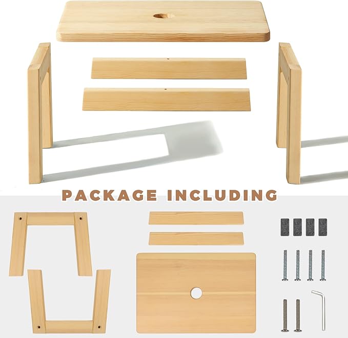 • FOOT PADS: Each wooden stool has separate foot pads that will not hurt your floor and prevent slipping.