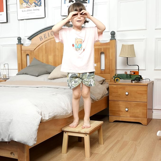 • SATETY: Arc treatments are made around the small stool to prevent your children from bumping into it. This small stool features an oval slat at the top for easy carrying. Step stools for adults shouldn't be bulky or cumbersome. Easily carry this bed stool from room to room.
