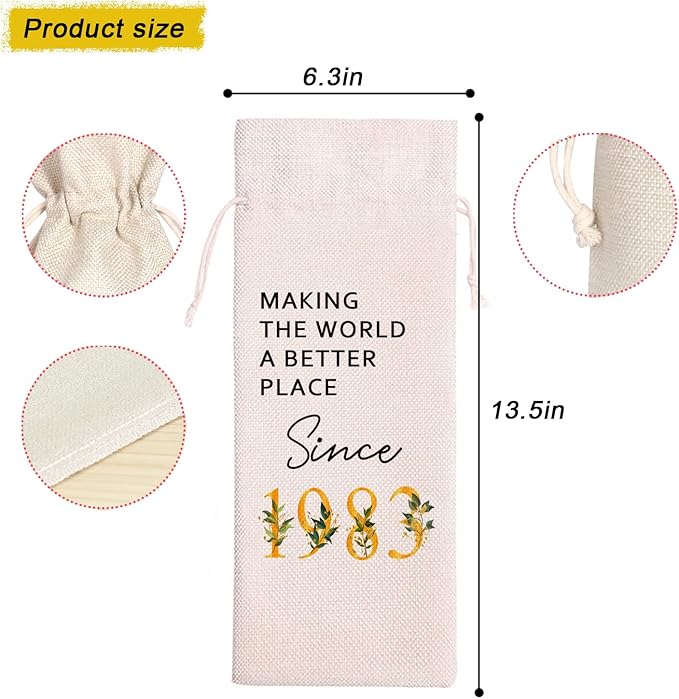 41th Birthday Gift | 41 Birthday Wine Bag Gift |Making The World A Better Place Since 1983 | 41 Birthday Gifts for Her Sister | 41 Years Old Gift Idea Wine Bag | Birthday Party Favors 11WB42
