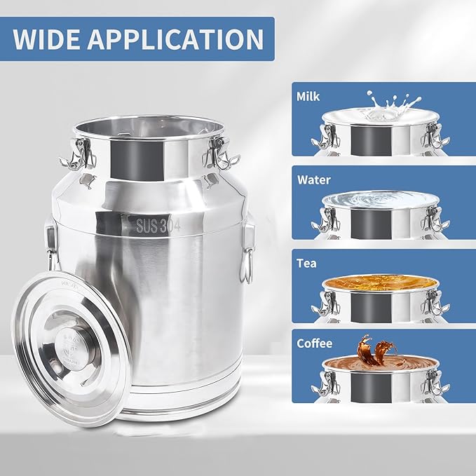 • 【304 HIGH QUALITY STAINLESS STEEL】Ensure you have a durable and high-strength milk can.It not rust easily.And when compared to aluminium,304 stainless steel can offer a number of benefits, including keep milk freshness for a longer time.