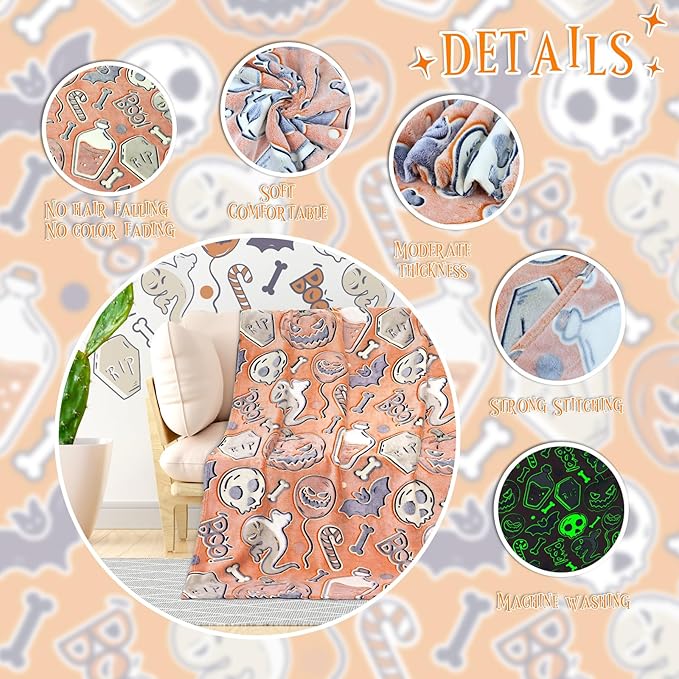 • HALLOWEEN DECORATIONS FOR HOME-our cute halloween blankets are not only soft halloween blankets but also halloween decor cute.such as skeleton halloween decor,halloween party decorations,halloween decorations outdoor,halloween room decor,halloween car accessories,cute spooky home decor,halloween pumpkin decorations,halloween living room decor,skull decor,spooky decor,hocus pocus decor,horror decor,ghost decor.amazing blanket to get into spooky season use as a spooky blanket to snuggle up with.