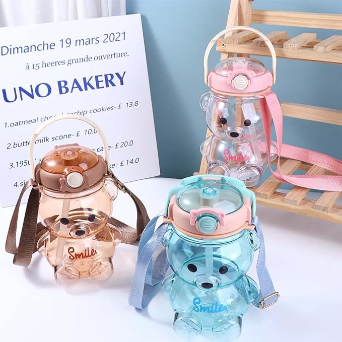 Vctitil Large Capacity Straw Water Cup Cute Bear Belly Cup Outdoor Sports Bottle 1000ml Plastic Water Cup(pink)