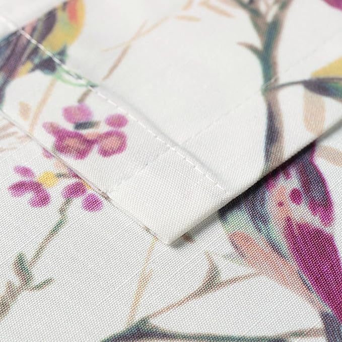 Leeva Modern Linen Textured Kitchen Tiers, 24 Inch Length Vivid Purple Bird Print Short Window Curtains for Bathroom, Rod Pocket Home Decor Drapes, 2 Panels Pair