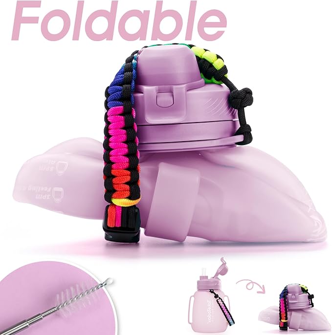 • Foldable bottle can save more space: Our 40 OZ gallon water bottles can be folded to save up to 68.5% space. The folding-up water bottle can be easily packed in your bags or packages and convenient to take with everywhere you go. The giant jug water bottle is rolled up and fixed with a braided paracord bottle handle,portable accessory for you on the go. Quite easy to carry and hang up with the water bottle handle.
