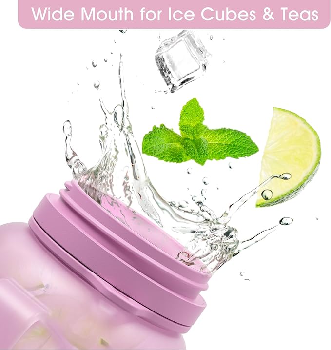 • Wide-mouth water bottle, free to add ice cubes and make fruit teas: The bottle 65mm diameter wide-open mouth makes it easy to clean. Not as other plastic gallon water jug, this hydrated water bottle can be wristed and rubbed to remove sendimentary factors on the bottle wall. The water tracker bottle body can contain water temperature between -40 degree to 200 degree, you can add ice cubes and other tea supplements.