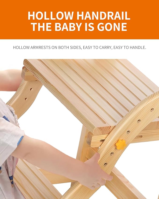• Multi-Applications: Wooden step stools height adjustable to suit different usage scenarios, such as bathroom, kitchen, playroom, living room, bedroom; can be used as toddler toilet step stool, ladder, bed stairs and so on; give kids extra support; help adults reach high