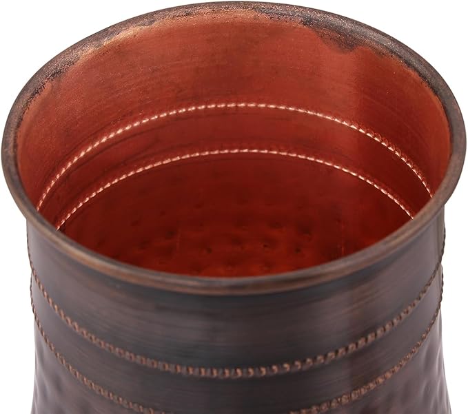 • Hand Crafted of Pure Copper - This bedroom bottle / carafe is hand crafted of pure copper in classic, antique style by skilled Indian Artisans.