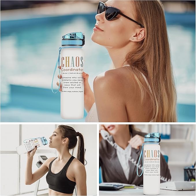 Macorner Chaos Coordinator Water Bottle Time Marker 32oz Leakproof - Birthday Gift Idea for Boss Women Coworker Manager Teacher Boss Lady Office Work Bestie - Suitable for School Gym Nurse Farewell