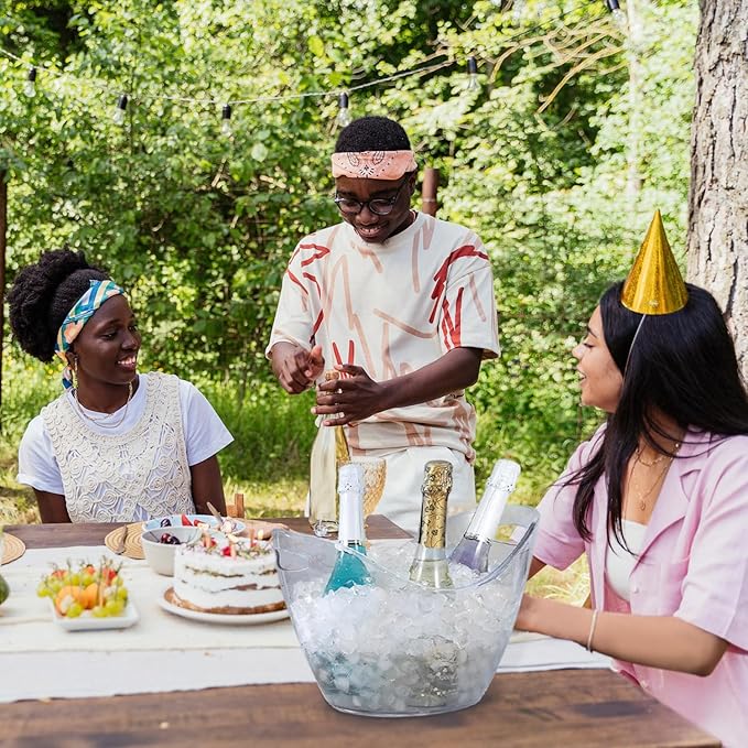 3-Pcs Ice Bucket - 4-Liter Food-Grade Clear Acrylic Champagne Bucket with Easy-to-Carry Handles, Fits 2 Wine Bottles or 5 Beer Bottles, Ideal for Parties
