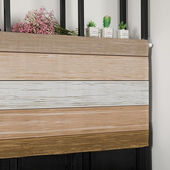 Farmhouse Kitchen Curtains Summer Fall Valances for Windows ,Brown Beach Fall Rod Pocket Country Window Treatment for Kitchen/Living Room/Bedroom/ Bathroom,42" X 18" -1 Panel, Rustic Barn Wood Texture