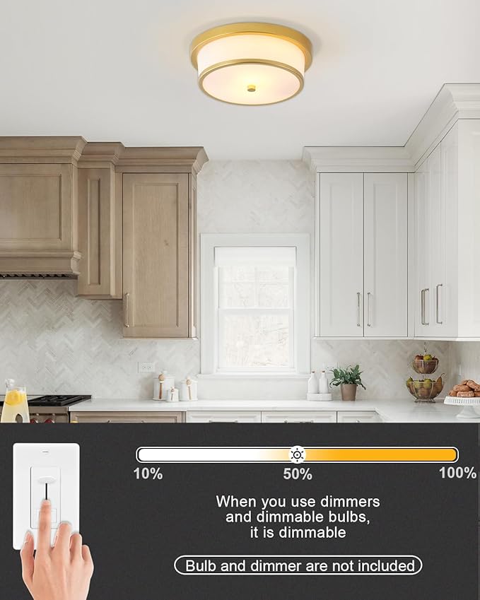 • 【BULB REQUIREMENTS】The bedroom lights for ceiling has two built-in E26 medium bulb bases, which support any LED/CFL/Edison bulbs with E26 bases, (Max 60W). When you use dimmer and dimmable bulb, the kitchen light fixtures ceiling can be dimmable. (Dimmers and bulbs are not included).