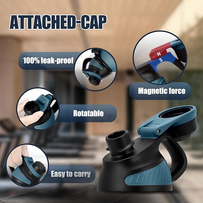 • Unique water bottle lid: This water bottle lid has a magnetic , which will not touch your nose when drinking.wide opening for cleaning and adding ice ,when the screw cap integrated into the lid,100% leak proof,the design is even more eco-friendly and practical