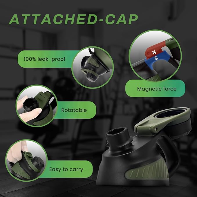 • Unique water bottle lid: This water bottle lid has a magnetic , which will not touch your nose when drinking.wide opening for cleaning and adding ice ,when the screw cap integrated into the lid,100% leak proof,the design is even more eco-friendly and practical