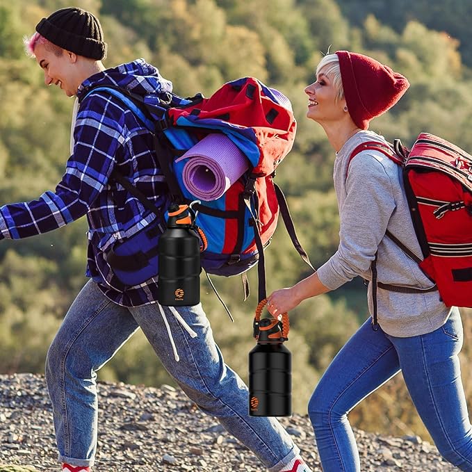 • Water bottle easy to carry: Fjbottle water bottle with a paracord handle and a handle ring.The paracord handle provides a comfortable and secure grip,you can also attach it to your backpack or bike with a carabiner for added outdoor convenience.
