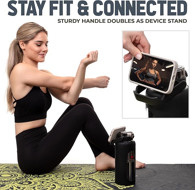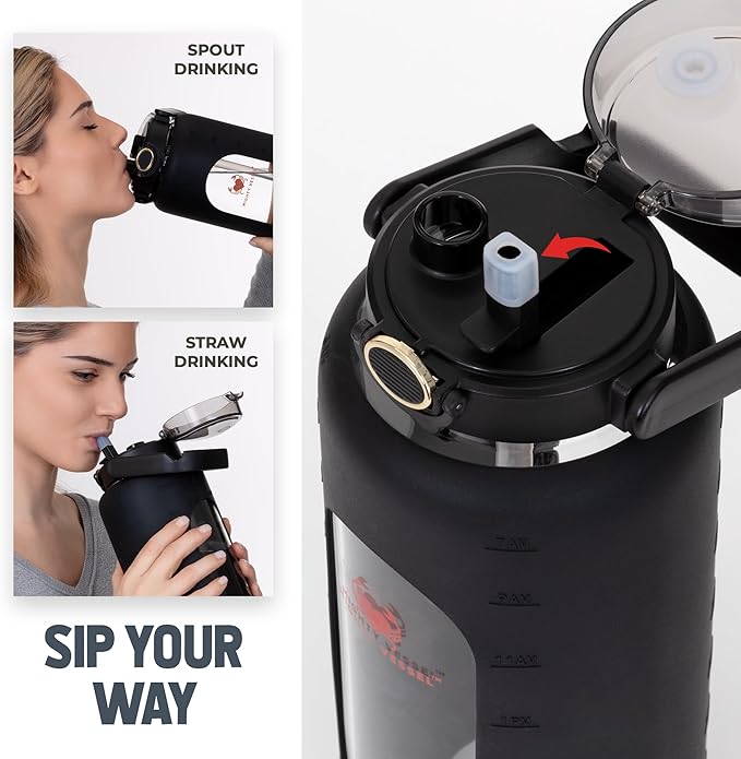 • {Substantial Capacity} - Our 64 Oz water bottle significantly surpasses others in terms of volume. This ample size ensures you stay hydrated without the need for frequent refills, making it perfect for extended exercise sessions, long runs, or intense workouts.