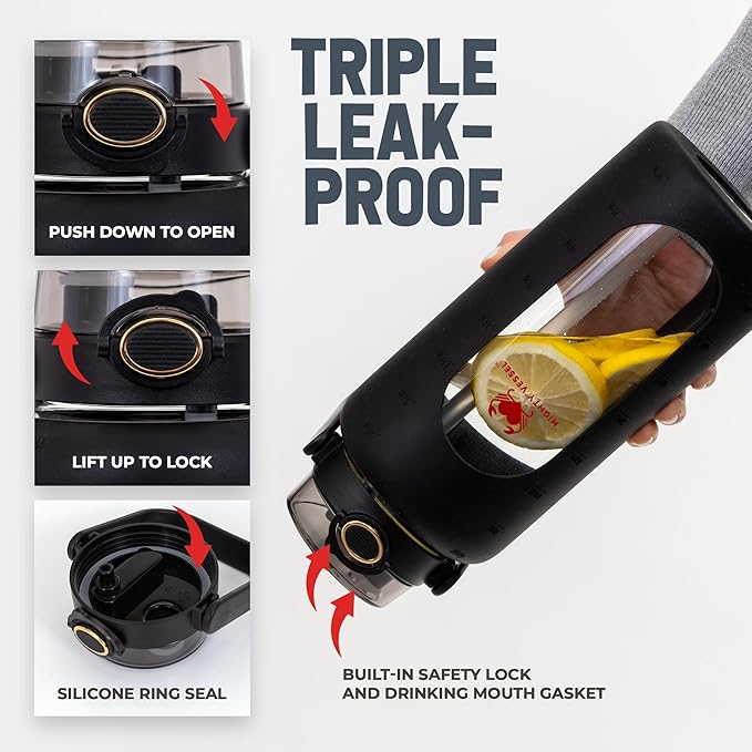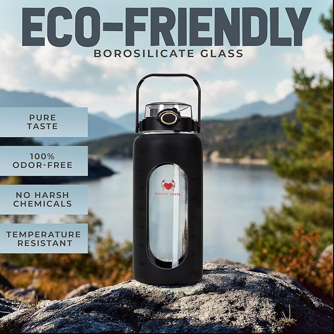 • {Unique Design} - While others are offering casual designs, our half gallon water bottle is made up of high quality glass. Clear water bottle transparent nature allows you to easily monitor your water intake, ensuring you stay on track with your hydration goals.