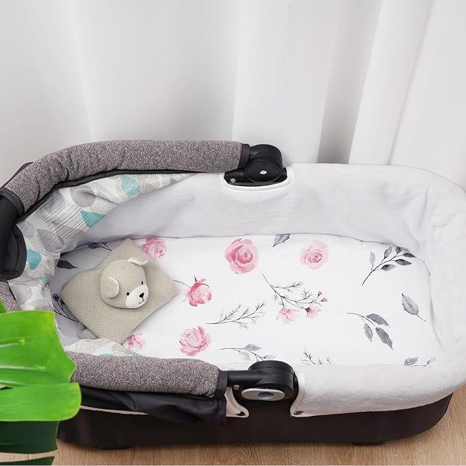 3 Pack Bassinet Sheets, Ultra Soft Breathable Comfortable Baby Sheet Set for Boys Girls Neutral, Univeral Fit for Most Cradle and Bassinet Mattress, Floral Flowers