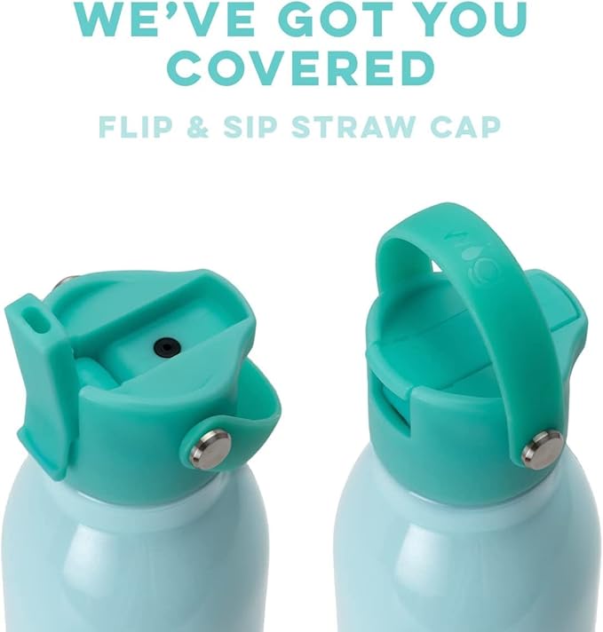 • EASY CARRY HANDLE WITH INNER STRAW. The all new Flip + Sip cap has a built in straw, handle, and is completely leak proof.