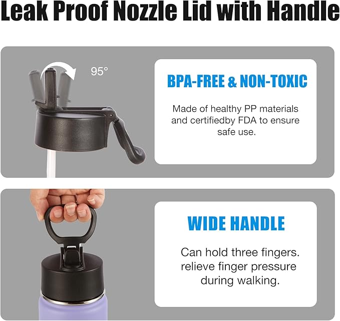 • CONVENIENT BOTTLE DESIGN: The lid is designed with a straw lid,flip-top spout makes it easy to drink,no leakage when fully closed,foldable handle,slim bottle can be easily put in your school bag,perfect fit for car cup holder,wide spout for easy refilling of water or adding ice cubes.
