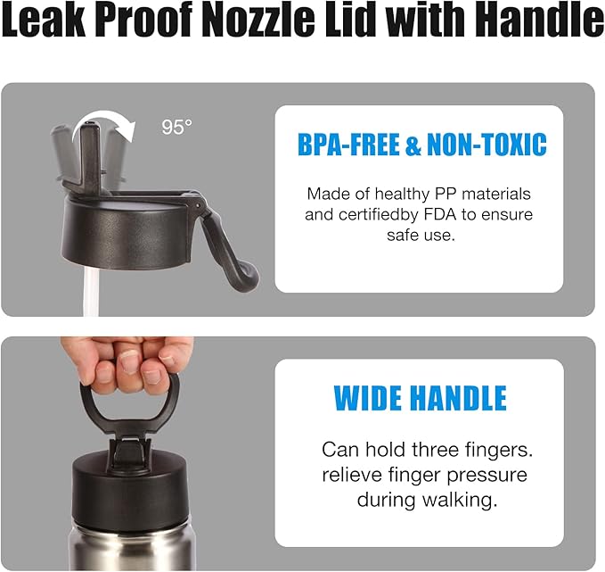 • CONVENIENT BOTTLE DESIGN: The lid is designed with a straw lid,flip-top spout makes it easy to drink,no leakage when fully closed,foldable handle,slim bottle can be easily put in your school bag,perfect fit for car cup holder,wide spout for easy refilling of water or adding ice cubes.