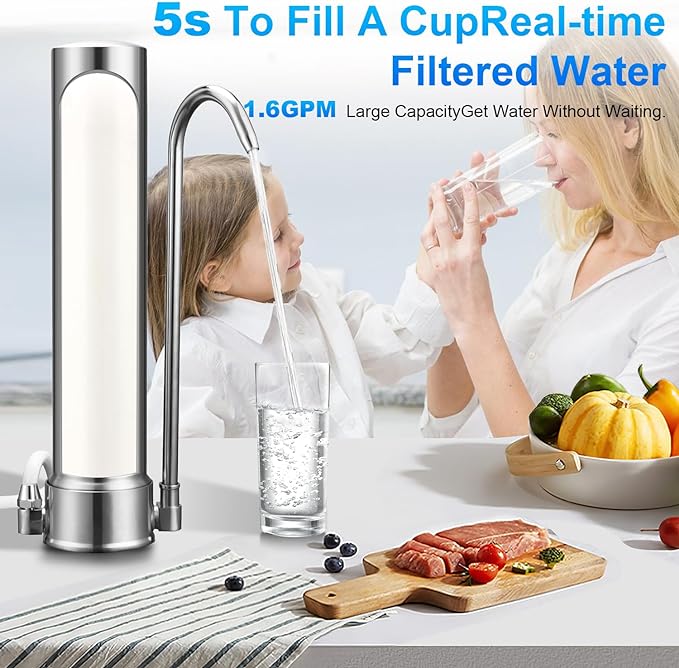 • 【Effective & Economical Choice】The countertop water filter can provide 6000 gallons of fresh water.Affordable choice. Excellent quality.You can save money and enjoy clean refreshing water.