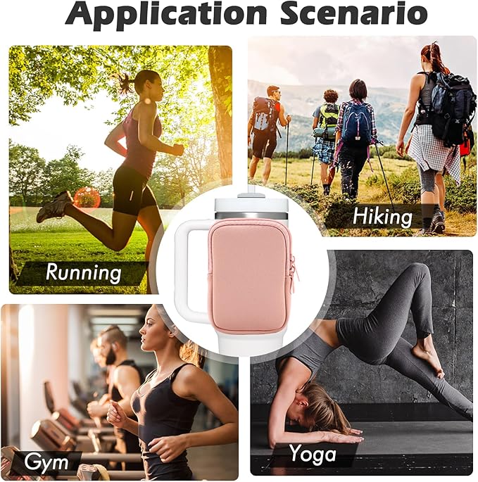 • Versatile and Functional: The design of this water bottle pouch takes into account versatility and is suitable for various settings and activities. Whether you're going to the gym, hiking, traveling, or just running errands, a water bottle bag ensures that your cup is always within reach. This tumbler pouch provides enough space for all your small necessities, such as mobile phones, cash, cards, keys, etc. You no longer need to worry about losing essential items or storing them separately