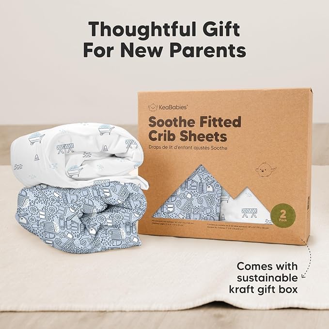 • 2-Pack Fitted Crib Sheets - Each KeaBabies Soothe Baby Crib Sheets set comes with two organic crib sheets for boys and girls that can perfectly fit the standard nursery crib mattresses sized at 52” x 28” and height of 3” to 8”.