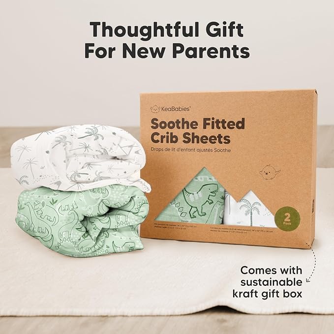 • 2-Pack Fitted Crib Sheets - Each KeaBabies Soothe Baby Crib Sheets set comes with two organic crib sheets for boys and girls that can perfectly fit the standard nursery crib mattresses sized at 52” x 28” and height of 3” to 8”.