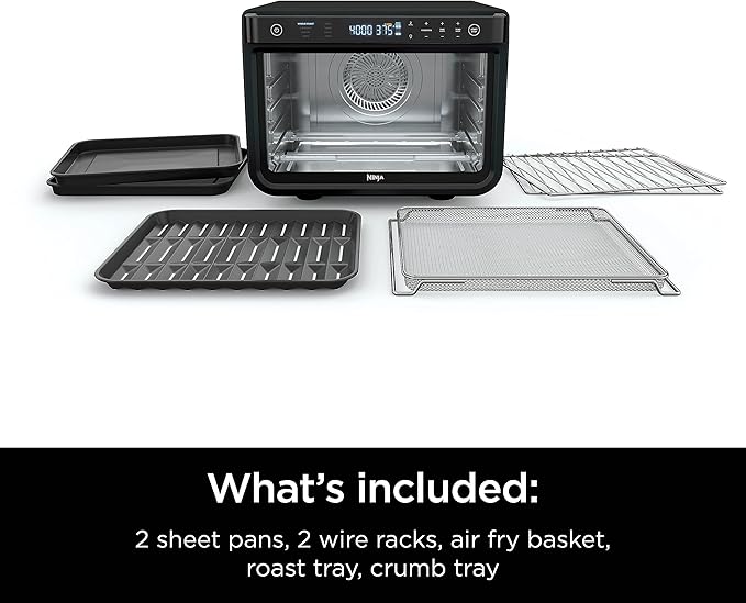 • WHAT’S INCLUDED: 2 sheet pans, 2 wire racks, air fry basket, roast tray, & crumb tray.