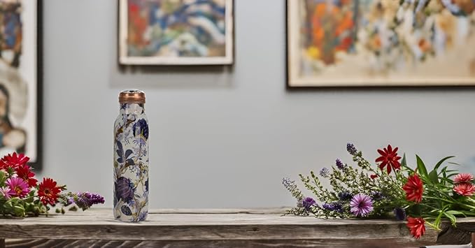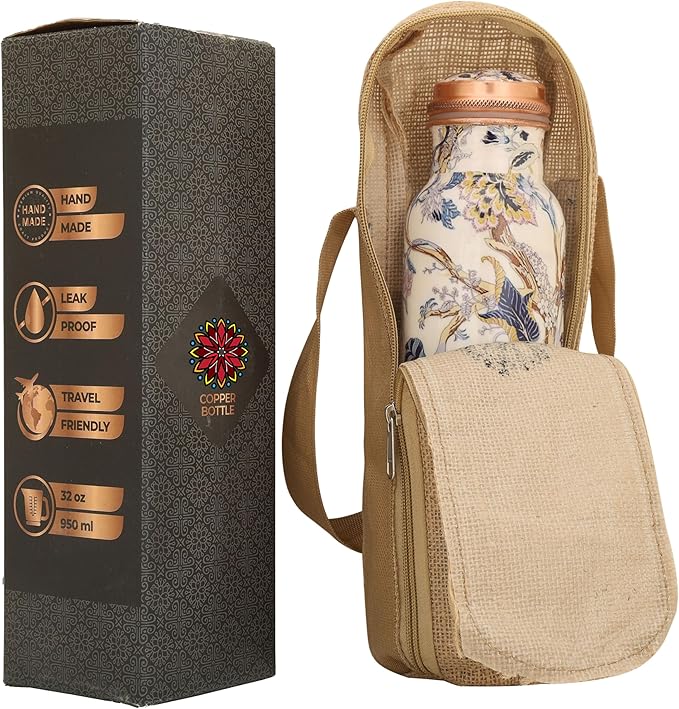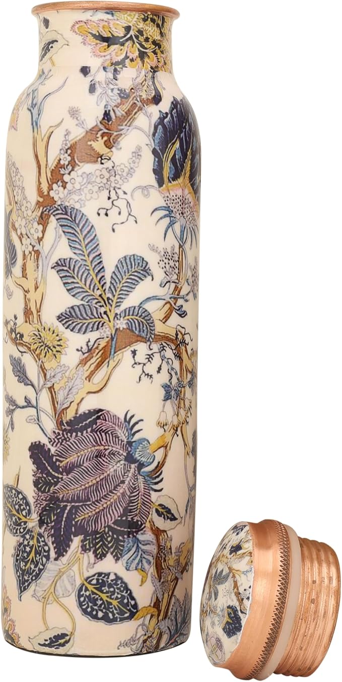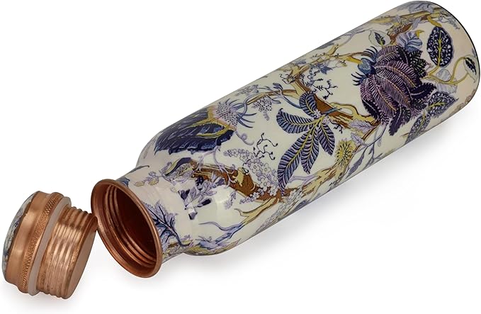 • PERFECT STYLE AND QUALITY: An Easy-To-Use, Leak-Proof Bottle. Wear It Confidently To The Gym, Yoga Class, Work And School, Even Upside Down! For An Added Style Statement, Choose A Beautifully Enamelled Or Etched Pattern. The Inside Of The Patterned Models Is Also Made Of Pure Copper - Your Health Is Important To Us. Easy To Clean
