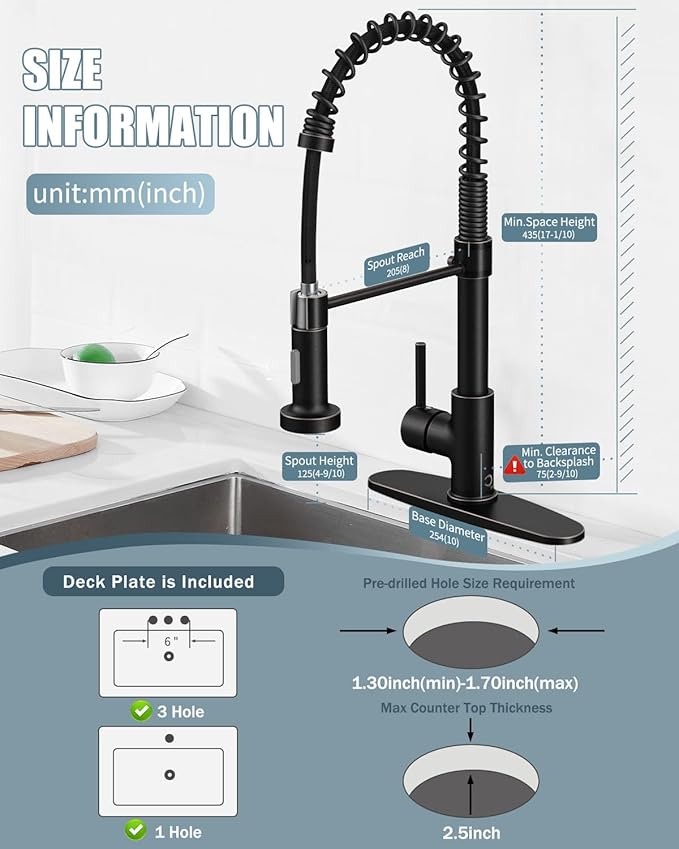 • 【MONEY WELL SPENT】A set of home decor include:17.1-inch tall touch pull out rv sink faucets*1, 10-Inch Hole Cover*1, 12-OZ/380ML Soap Dispenser *1. Buy a set at once, saving you time and money. Universal design for a complete look, keep the unity of use and bring you a sense of familiarity in experience. Believe that if you have used this set, you will definitely recommend it to your friends or relatives.