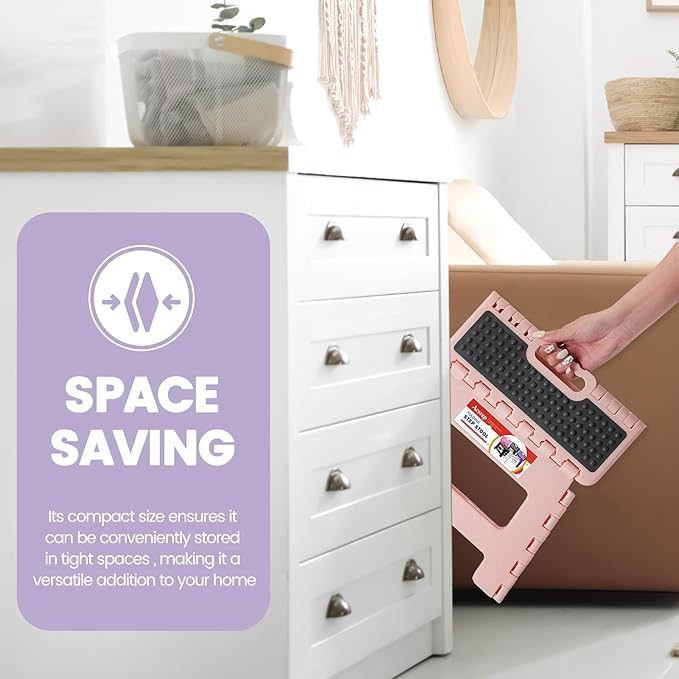 • Versatile Use: The kids step stool are ideal for kitchens, bedrooms, bathrooms, and more. Use step stools for reaching high shelves, organizing wardrobes, or stepping safely in the bathroom. With endless possibilities, this folding step stool is a must-have tool for every corner of your home.