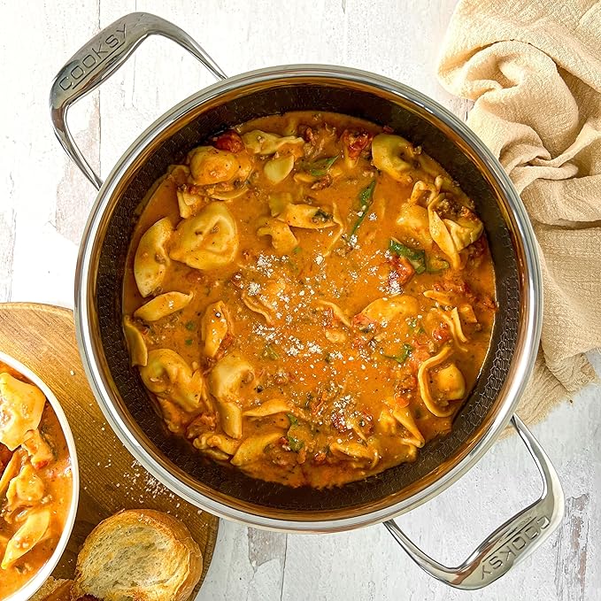 • EASY-RELEASE: The Cooksy pan’s hybrid surface enhances flavor development by bonding with your food, similar to pure stainless steel pans. Releasing the bond is effortless—just cook with a small amount of oil or butter, and give your food a gentle nudge with a spatula. Experience the same flavors as with stainless steel but with a more glide-friendly surface.