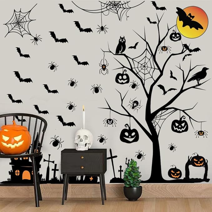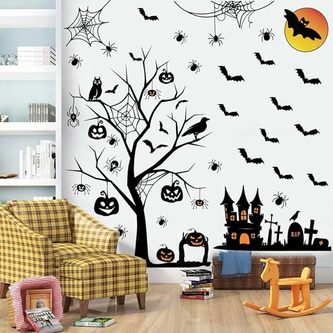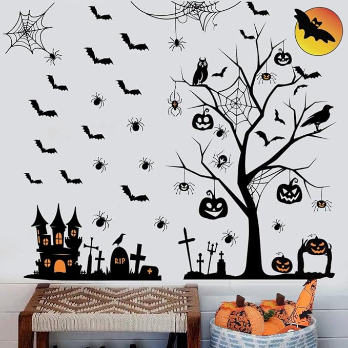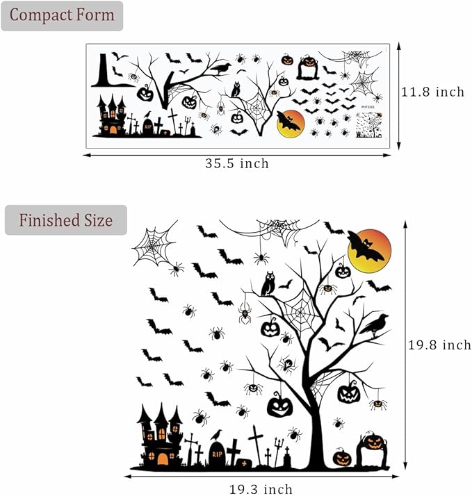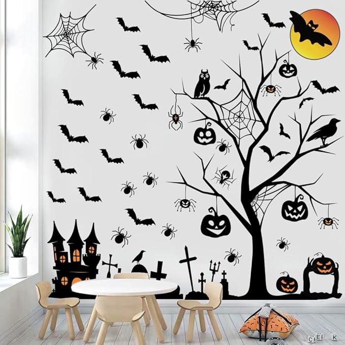 • Package Include: There are a set of Halloween wall decals, including tree, castle, pumpkin, moon, bats, tombstone, and so on. Sufficient quantity and various sizes allow you to decorate the stickers on the wall, door or window according to your own ideas.